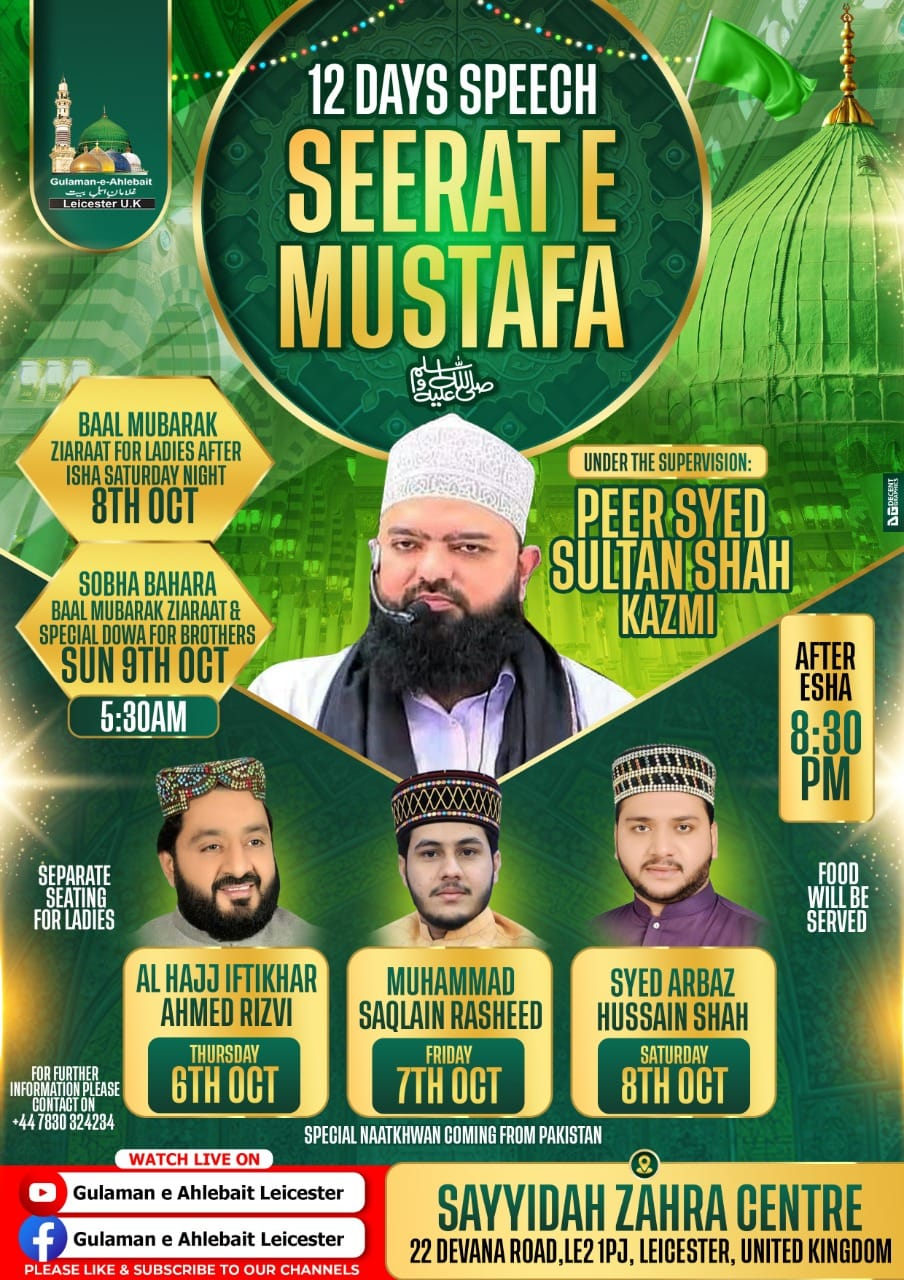 The ambition of Gulamane Ahlebait Leicester is to serve the mankind spiritually, religiously